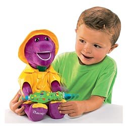 Barney makes rainy days fun again! Just like he does on the show, Barney tips his head back and forth to pretend to catch raindrops in his mouth. Barney also moves his umbrella side to side in a fun motion while singing "If All the Raindrops" and "Singin' in the Rain." Press his foot while he's singing to add fun sound effects. Barney measures approximately 13 inches tall. Requires 3 "AA" alkaline batteries (included). Includes exclusive Barney DVD. Read more...