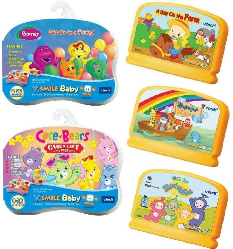 Vtech V Baby Game Bundle: 5 Game Bundle. Age Group: 9+ Months. This bundle of Vtech Baby games includes the following V Baby games: Care Bears, Noah's Ark: Animal Adventures, Teletubbies, A Day on the Farm, and Barney. These games work with the V. Smile Baby Infant Development System. These items, bought individually, would sell for .99, but are now bundled for a significant discount Read more...