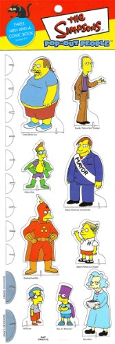 Pop out each character, put 'em on their bases, and stand em up in front of cool scenery. Arrange these on your desk, dashboard, computer, bookshelf, or wherever you need some fun. Each element is printed on both sides in full color, and each set comes with its own custom 2-sided diorama. Collect 'em all.Calling all comic book nerds! At long last, it's the set every Simpsons fan must have! Bart, Milhouse, and Martin join financial forces to purchase a copy of Radioactive Man #1, then wind up fighting over who gets to keep it overnight. It's all here: Costumed comics convention weirdos, washed-up former child actors, overweight shop proprietors. Bonus Fun Fact: We had to sacrifice an extra character just to fit the Comic Book Guy on the card! Read more...