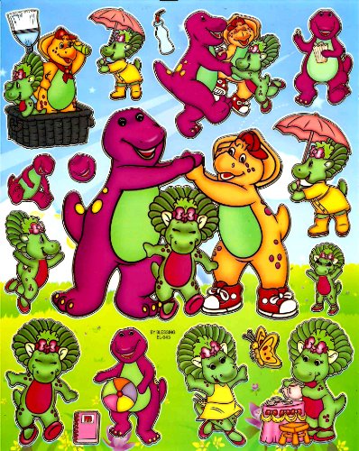 Barney the Purple Dinosaur Sticker Sheet BL043 ~ B.J. Baby Bop Riff Tyrannosaurus Rex Triceratops Protoceratops Hadrosaur Beach Ball Review